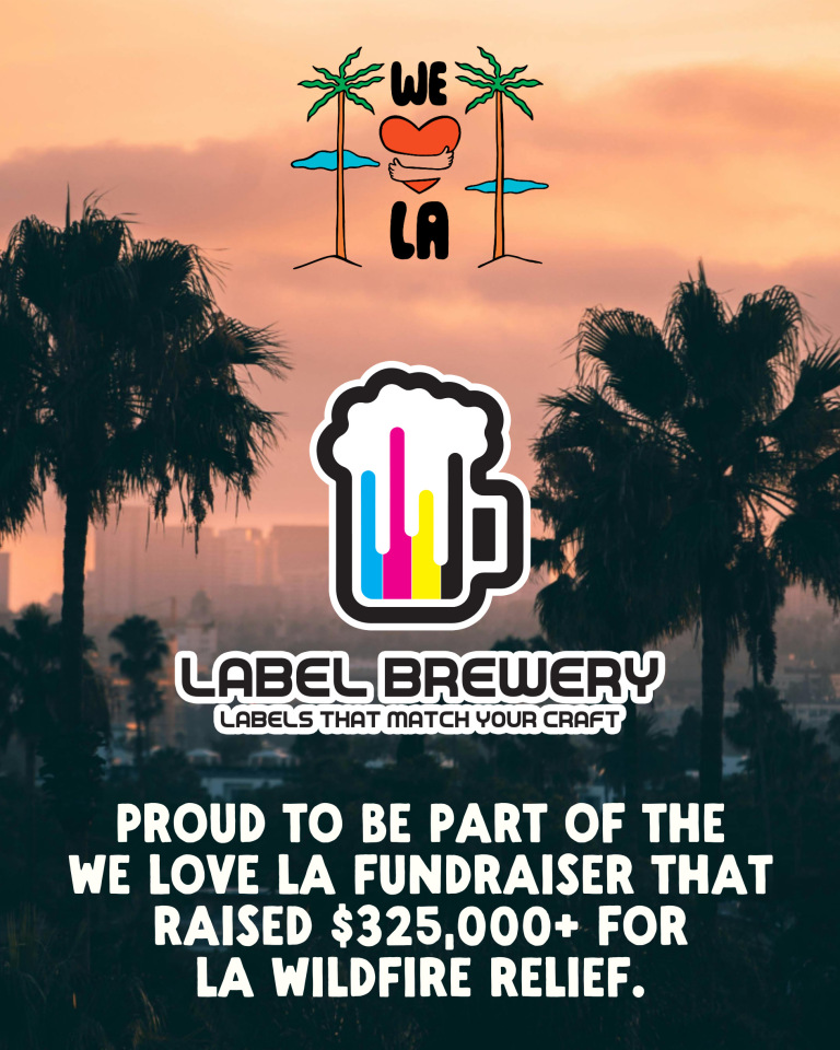 Label Brewery is honored to be one of the label manufacturers for the WE LOVE LA Brew fundraiser. It was an amazing opportunity to work with so many passionate and dedicated breweries while also supporting our local families and businesses in need. Our hearts go out to everyone affected by the fires, and to the city of Los Angeles.